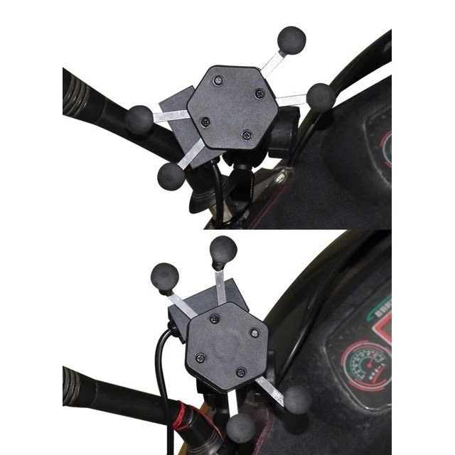 Điểm nổi bật chính là cổng sạc USB tích hợp – giúp sạc điện thoại mọi lúc trong suốt hành trình, không lo hết pin khi dùng GPS, nghe nhạc hay gọi điện. Hệ thống cố định chắc chắn, xoay 360 độ dễ điều chỉnh góc nhìn, tiện lợi tối đa khi điều khiển xe.
