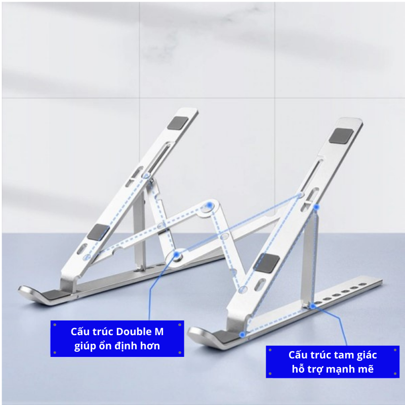 - Hợp kim nhôm Nâng cao màn hình laptop/macbook: Điều chỉnh độ cao linh hoạt, cải thiện tư thế ngồi giúp đầu cổ và cột sống không bị mỏi Thiết kế các rãnh chống trượt, có thể chịu lực tối đa lên đến 75kg Thoát nhiệt tốt giúp hạn chế bị nóng máy khi làm việc quá lâu Thiết kế đơn giản, gập gọn để mang đi. Sử dụng đa mục đích: tại nhà, văn phòng, du lịch với nhiều tư thế tiện lợi *Thoải mái xem phim, nghe nhạc, lướt web, giải trí ở chế độ rãnh tay. Ngoài ra có thể dùng làm giá đỡ đọc sách, tư thế ngồi đọc thoải mái, giải phóng đôi tay bạn sẽ tập trung nhất và thoải mái nhất cho việc đọc sách