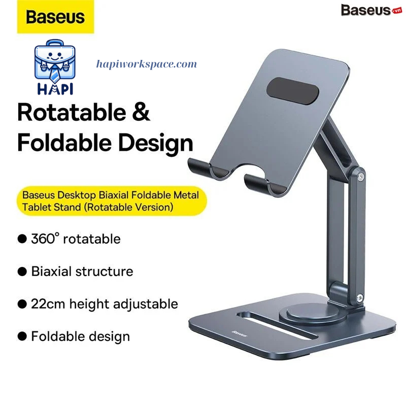 THÔNG TIN CƠ BẢN - Thương hiệu: Baseus - Model: BS-LVN051-TB-GY - Năm sản xuất: 2025 - Loại giá đỡ : Giá đỡ máy tính bảng - Khối lượng: 401 gram - Chất liệu: Kim loại - Màu