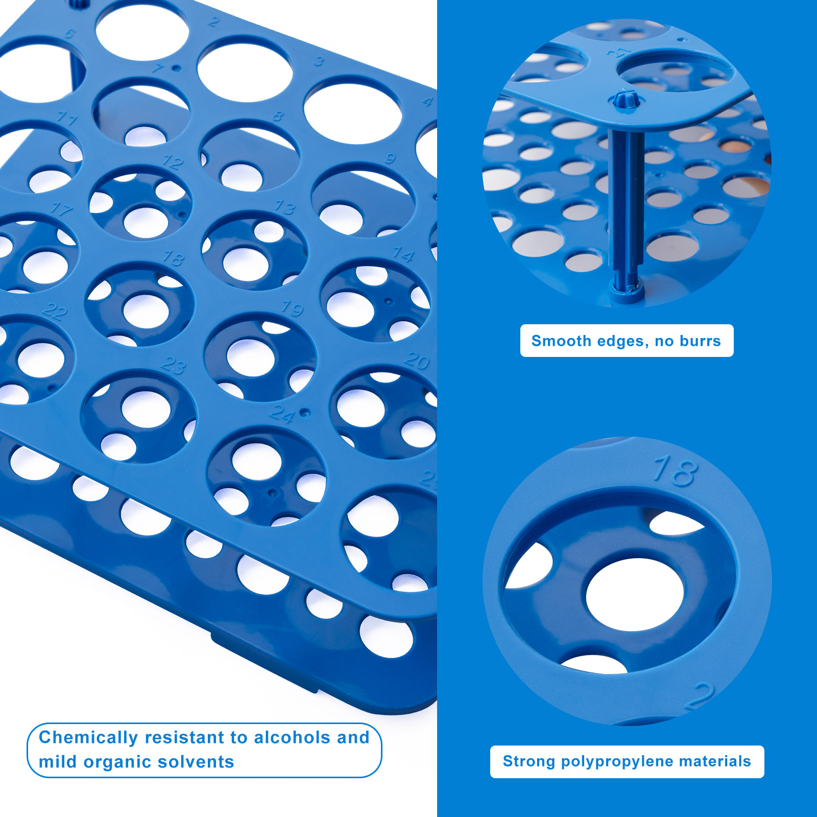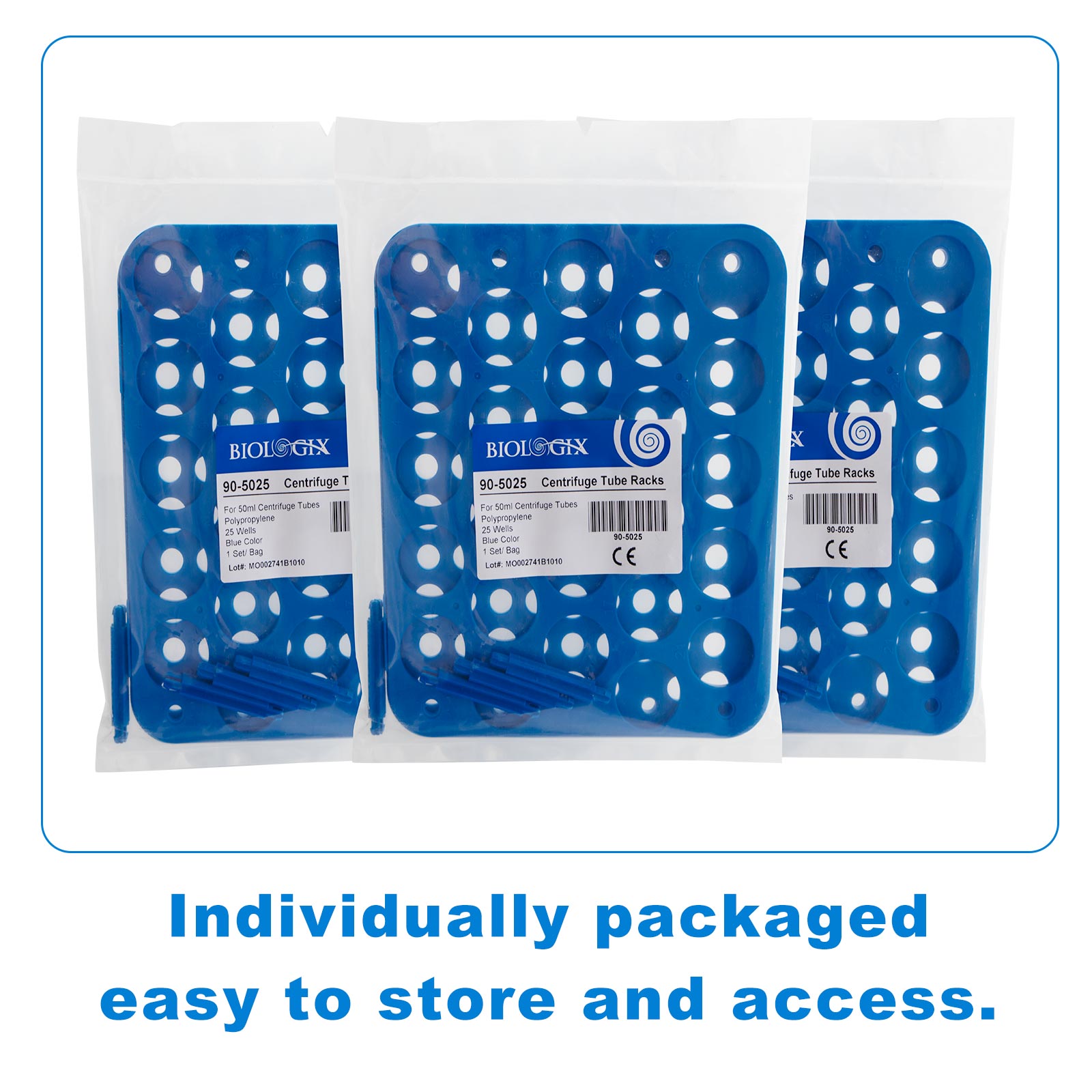 PP Centrifuge Tube Racks Brand:BIOLOGIX Model:90-1550 Material:PP PP Centrifuge Tube Racks Characteristic: ● Made of high quality medical grade polypropylene ● 50-well racks hold 15ml centrifuge tubes ● Sturdy design keeps tubes upright