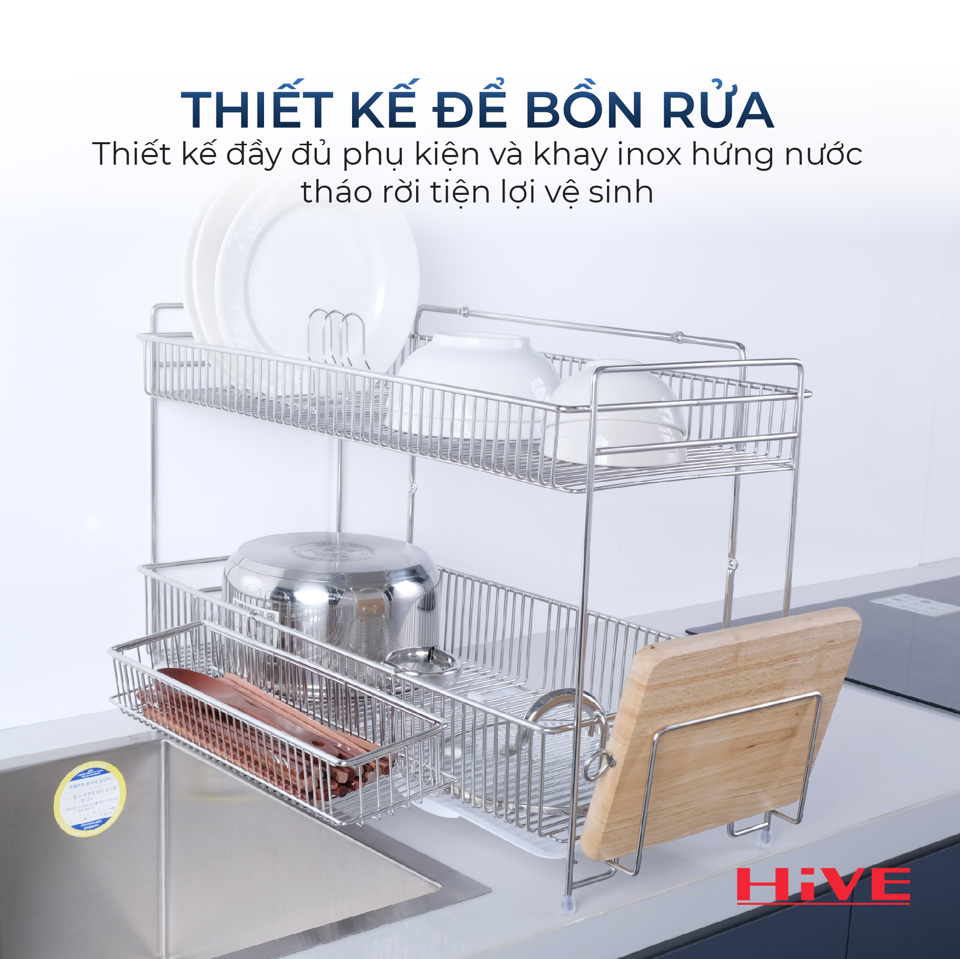 Kệ (giá) để chén bát HiVE New 2 tầng inox 304 là giải pháp tuyệt vời giúp không gian bếp của bạn luôn gọn gàng, sạch sẽ và ngăn nắp. Với chất liệu inox 304