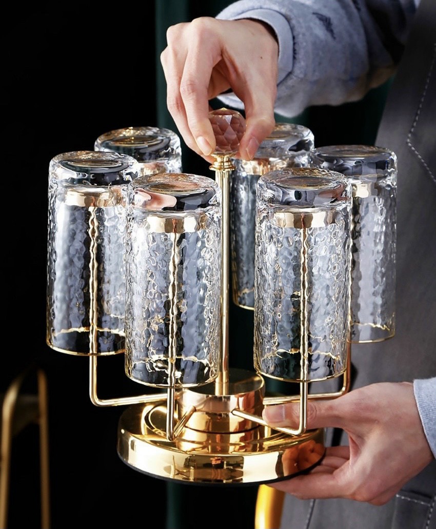 Giá cắm 6 chiếc cốc dạng gọn (CL95965) Giá có khay hứng nước Chất liệu sắt sơn tĩnh điện cao cấp màu vàng cực sang chảnh Dễ vệ sinh, không bị hoen rỉ Kiểu dáng