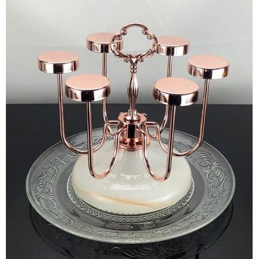Giá úp cốc 6 chiếc trụ inox màu vàng hồng đế đá