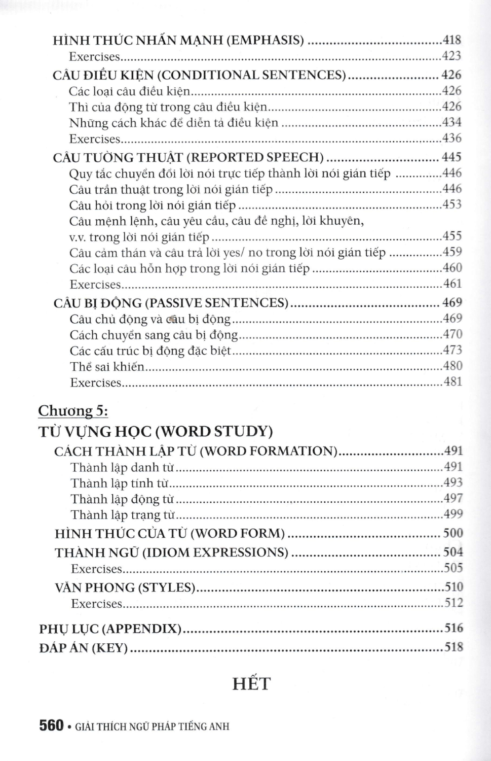 - Từ Vựng Học (Word Study). Các chủ điểm ngữ pháp trong từng chương được trình bày rõ ràng, chỉ tiết, giải thích cặn kẽ các cách dùng và quy luật mà người học cản nắm vững. Sau mỗi chủ điểm ngữ pháp là phản bài tập đa dạng nhằm giúp người học cùng có phản lý thuyết. Rất mong nhận được sự góp ý từ phía độc giả để giúp chúng tôi hoàn thiện sách.