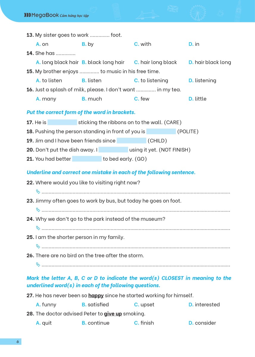 Bài tập tiếng Anh lớp 7 (không đáp án) Sách bài tập tiếng anh lớp 7 được biên soạn dành cho học sinh lớp 7, do Nhà xuất bản Đại học Quốc gia Hà Nội