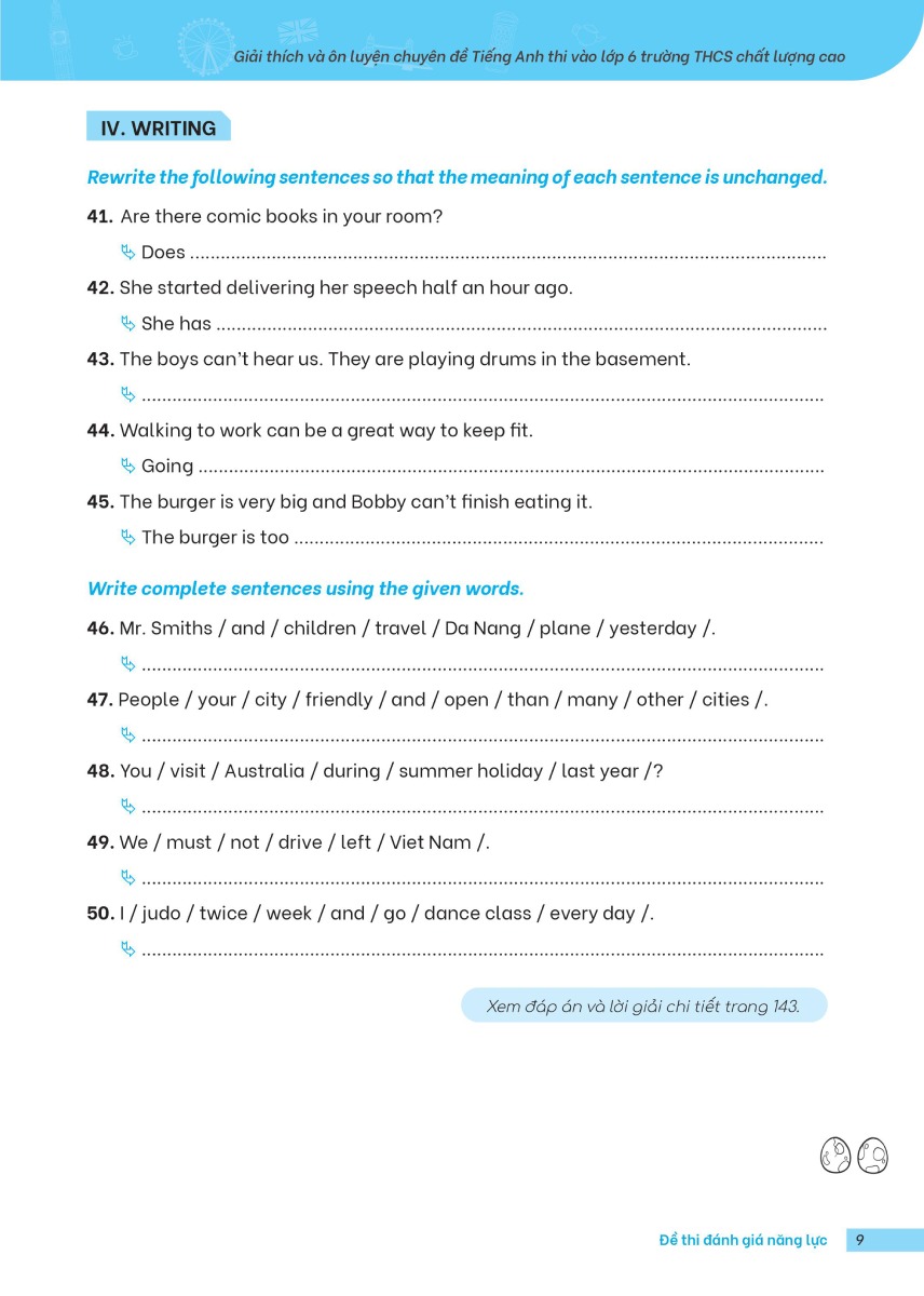 Đề thi đánh giá năng lực được biên soạn như một đề thi thật, không chỉ giúp các em đánh giá lại kiến thức của bản thân để có kế hoạch ôn tập cụ thể mà còn giúp các em đưa ra các mục tiêu phù hợp cho kì thi tuyển sinh vào lớp 6.