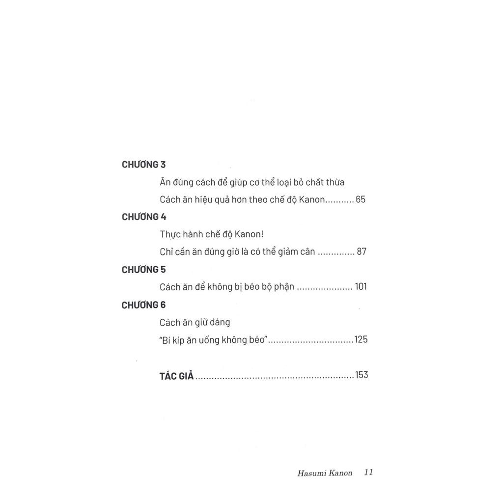 Nhận thấy điều ấy, tác giả Hasumi Kanon đã dành một thời gian dài tìm hiểu kỹ lưỡng để sáng tạo ra “Chế độ ăn kiêng Kanon”. Không cần khổ sở nhịn ăn tinh bột, nhịn ăn chất béo, không cần vất vả tập luyện; chỉ cần ăn uống hợp lý, sinh hoạt điều độ. Kết quả sẽ là thân hình gọn gàng, cân nặng giảm xuống. Điều tuyệt vời hơn nữa là vóc dáng sẽ đẹp hơn ngay cả khi cân nặng chưa bắt đầu thay đổi.