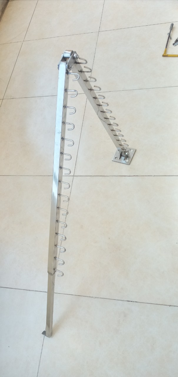 cty inox khởi hòa chúng tôi chuyên sx các sp về inox với dòng sp giá phơi quần áo có kích thước 180 cm tải trọng tối đa cho sp là 45kg ,sp được sx như sau 1..../ mặt bích inox dày 5mm được đột 4 lỗ bắt vít vào tường (sp kèm theo 4 vít lục giác và nở nhựa)