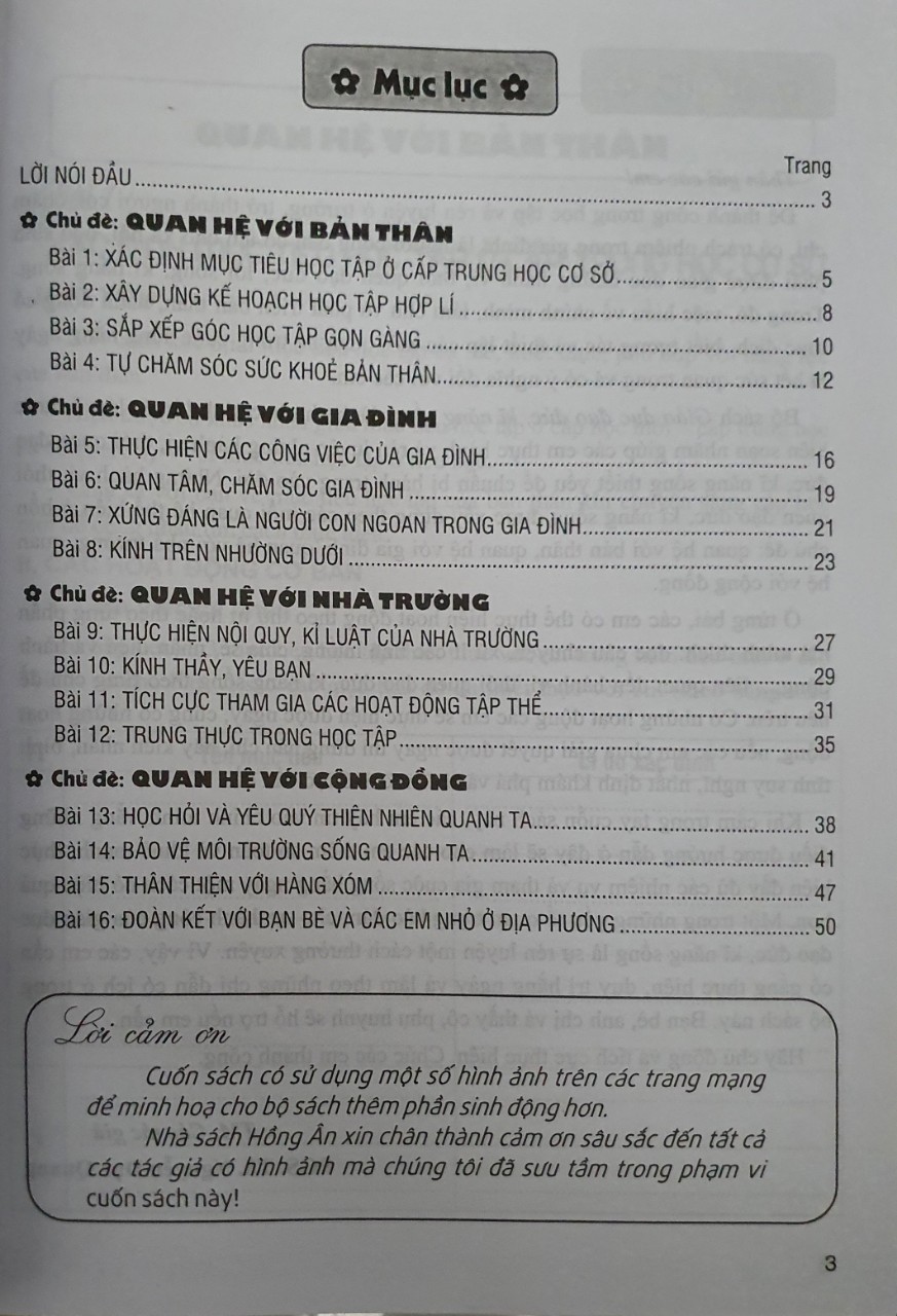 Ở từng bài, các em có thể thực hiện hoạt động theo thứ tự hoặc theo từng phần mà mình thích: đọc câu chuyện, xử lý các tình huống, chia sẻ, nhận diện và hành động, liên quan đến hành vi, thói quen đạo đức, kĩ năng sống theo từng chủ đề nêu trên. Có những hoạt động các em sẽ thực hiện được ngay, cũng có những hoạt động, nếu các em chưa giải quyết được ngay thì đừng nản chí, hãy kiên nhẫn, bình tĩnh suy nghĩ, nhất định khám phá và sẽ làm chủ được vấn đề.