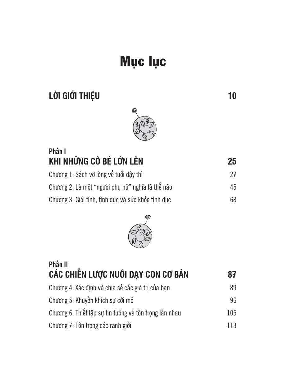 Cuốn sách giúp bạn nhận ra những gì con gái mình đang trải qua, hướng dẫn bạn cách có những cuộc trò chuyện cởi mở về mọi thứ liên quan đến vấn đề giới tính cho con gái.
