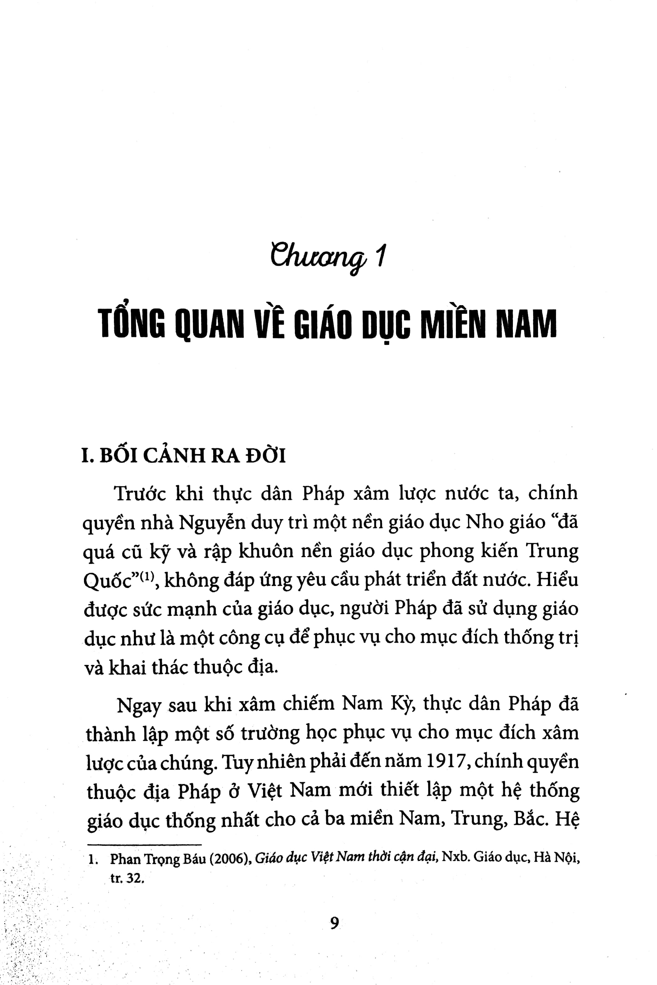Ở miền Nam Việt Nam, nền giáo dục phương Tây đã được du nhập vào từ khi thực dân Pháp xâm lược, và dưới chế độ Việt Nam Cộng hòa nền giáo dục đó tiếp tục được duy trì, dựa trên một nền giáo dục tiên tiến trên thế giới.