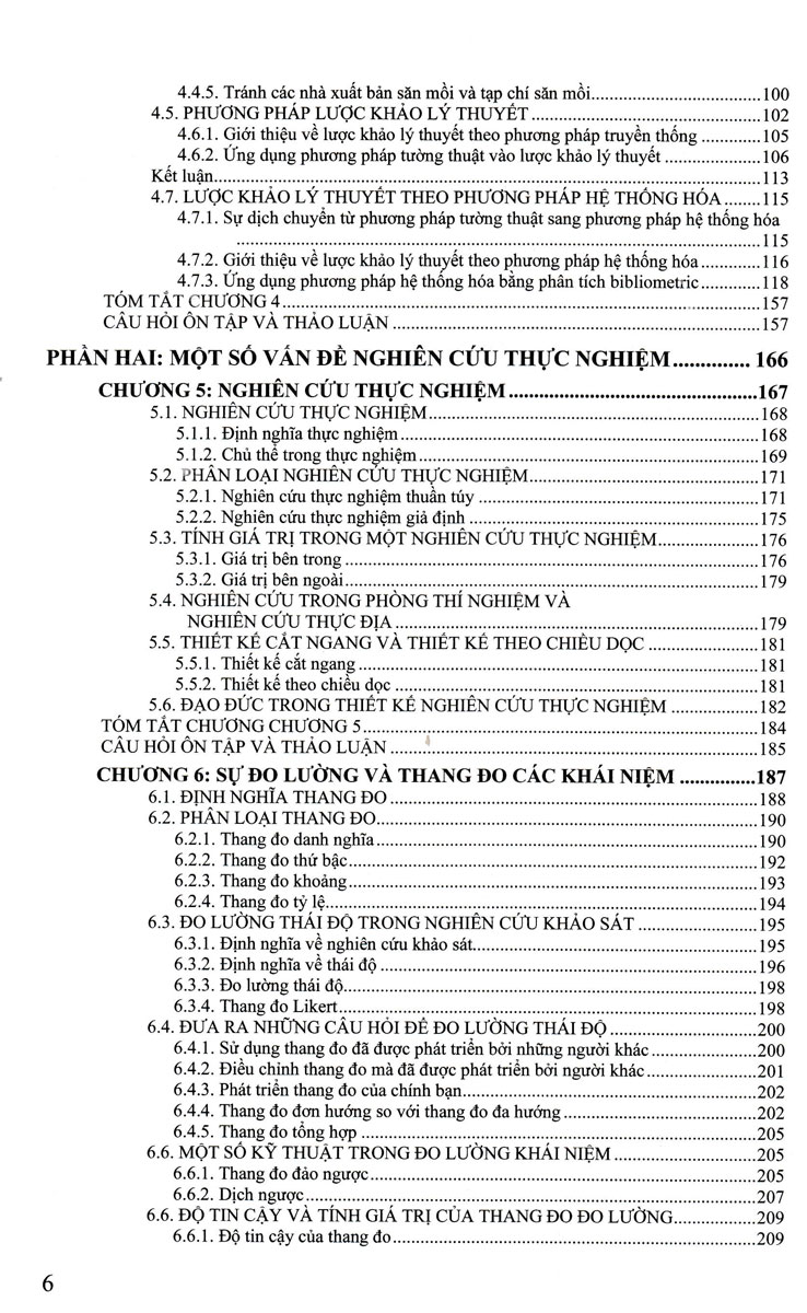 ● Phần II (Chương 5, 6, 7, 8, 9): Một số vấn đề nghiên cứu thực nghiệm.