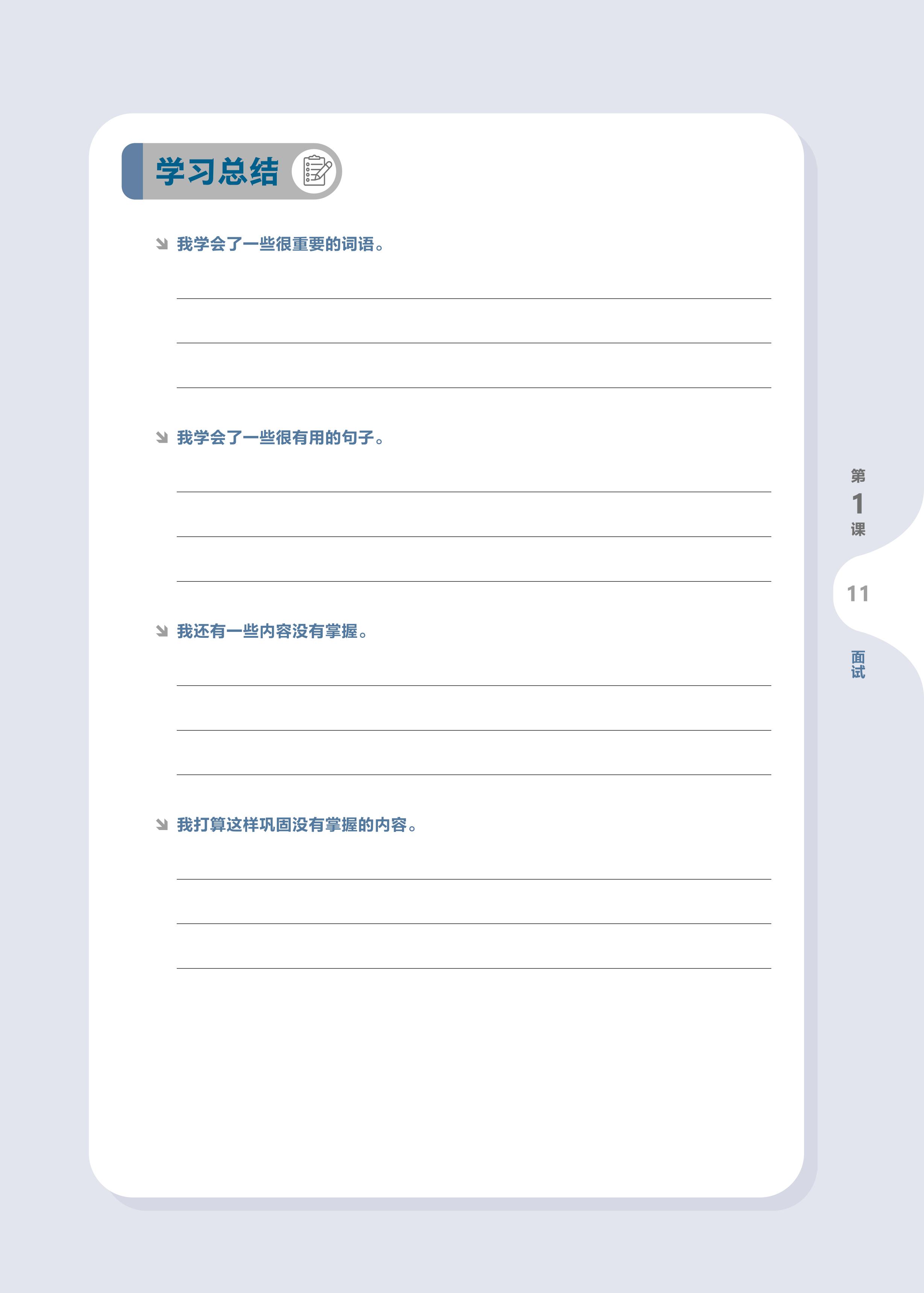 • Tổng kết học tập: Hướng dẫn người học tự đánh giá, kiểm tra hiệu quả học tập, tổng kết các từ ngữ và câu trọng điểm đã học trong bài, tìm ra những vấn đề còn tồn tại và những nội dung chưa nắm vững để giải quyết và củng cố.