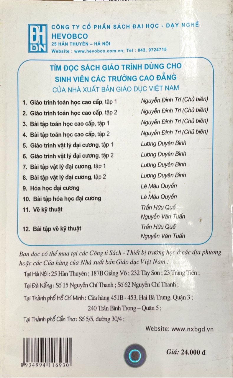 Tên đề tài: Bài tập tin học đại cương Tác giả: Tô Văn Nam Năm xuất bản: 2010 Khổ sách: 16.0 x 24.0 Số trang: 276 Nhà xuất bản: NXB Giáo dục VN Công ty phát hành: Công ty