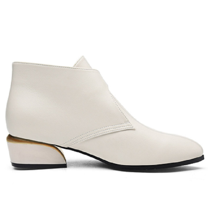ROSATA - thương hiệu giày thời trang nữ cao cấp THUẦN VIỆT NHƯNG CHẤT LƯỢNG QUỐC TẾ ---- Giày bốt nữ cổ ngắn màu trắng kem 4p RO308 ROSATA tại BCASHOP khóa nút tiện lợi,