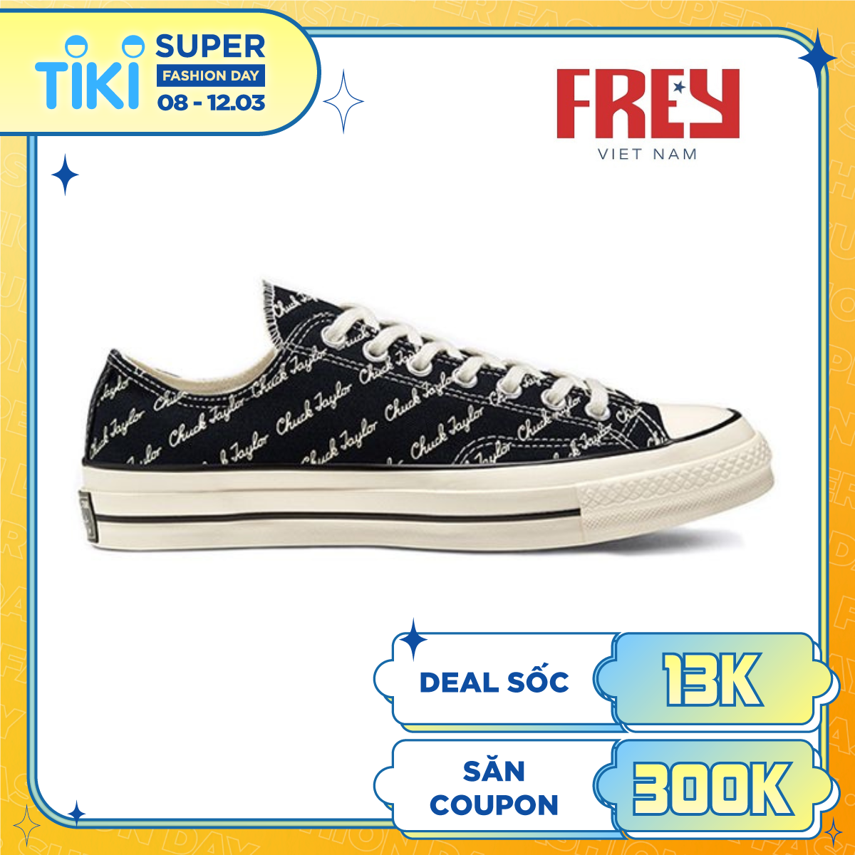 - Converse Chuck 1970s Signature Low Top với thiết kế chữ Converse chạy dọc trên toàn bộ thân giày.
