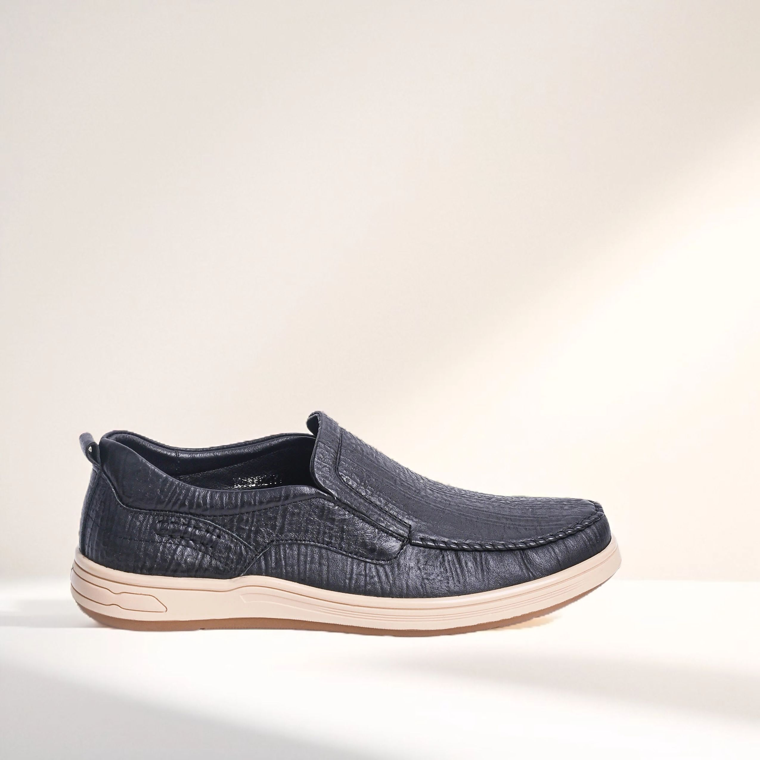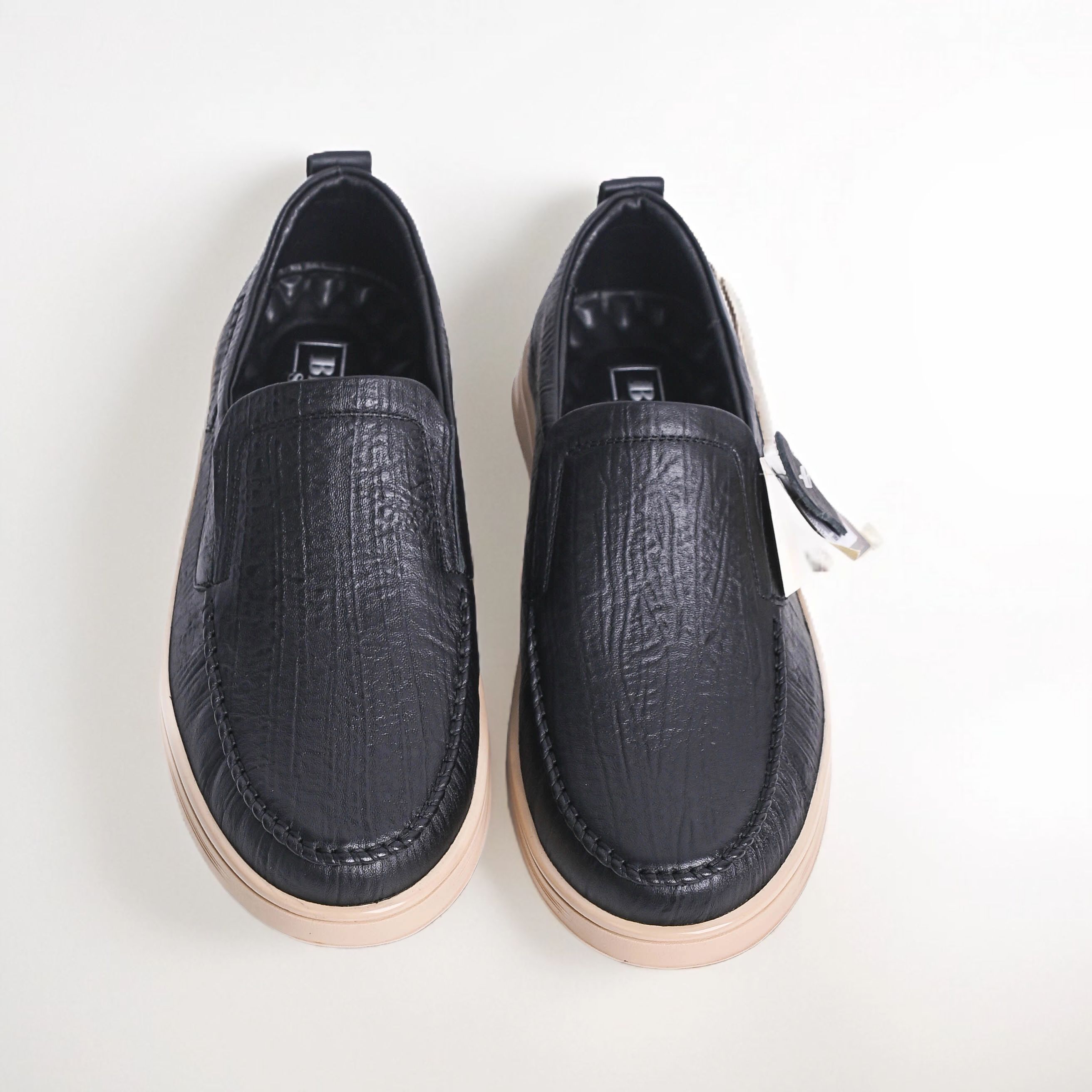 Thiết kế: • Kiểu dáng giày lười hiện đại, dễ mang – dễ phối đồ • Tông màu đen sang trọng, phù hợp cả đi làm lẫn đi chơi • Đường chỉ may tinh tế, viền mũi chắc chắn – tăng độ bền và tạo điểm nhấn thủ công