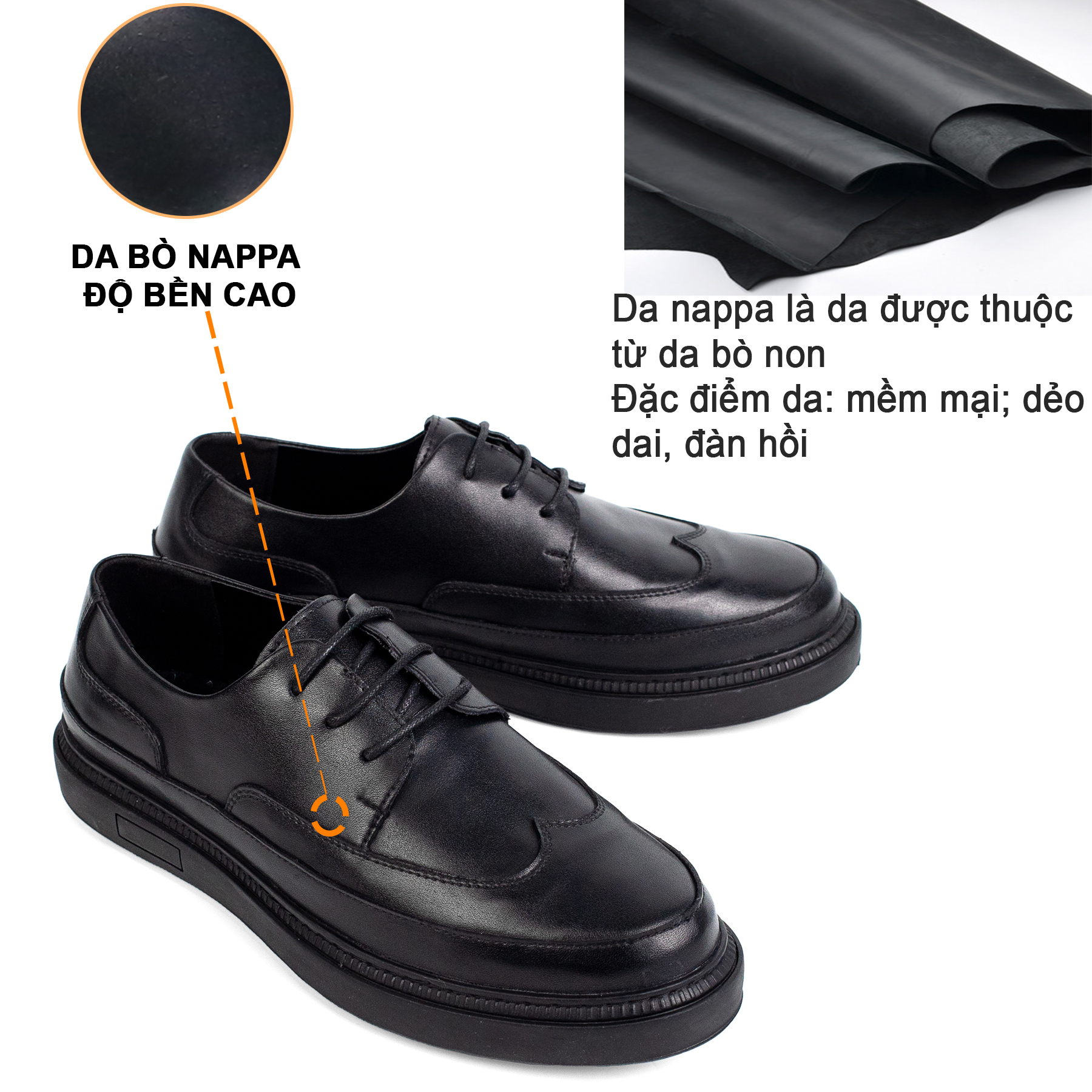 Giày Tây Nam với chất liệu da bò bền đẹp kết hợp đế cao su êm nhẹ chống trơn trượt giúp bạn Nam luôn thoải mái, tự tin khi đi chơi, dạo phố, đi làm