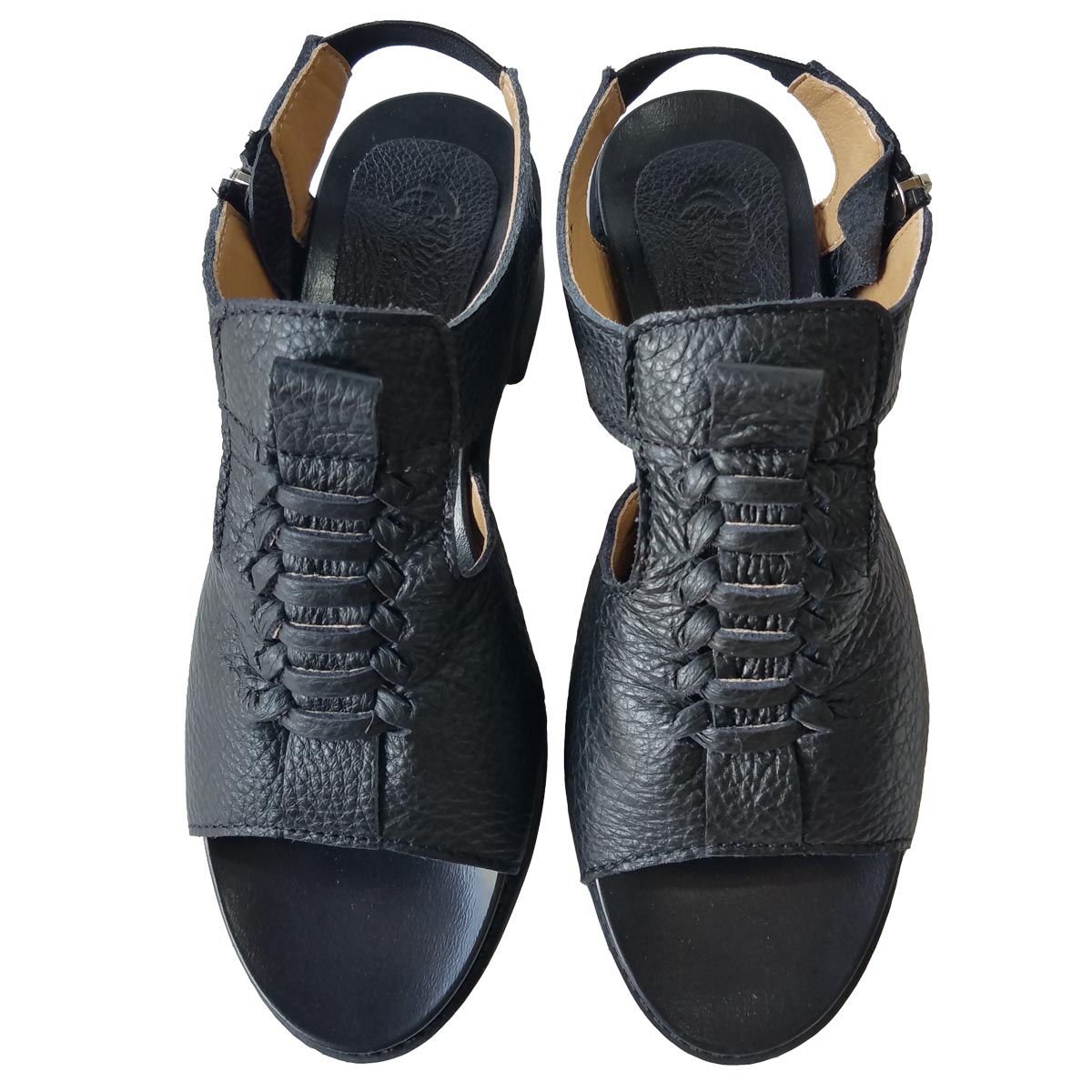 Dép xăng đan nữ đế vuông cao 5cm da bò thật