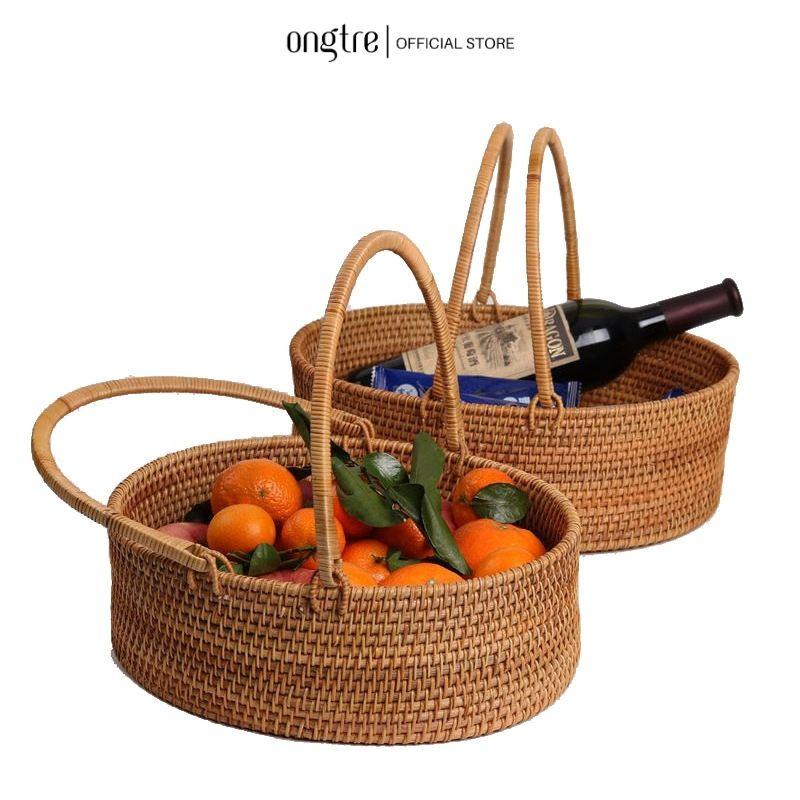 ✨Giỏ mây guột có quai xách hình bầu dục ONGTRE đa năng, đựng hoa quả, đồ khô, decor trang trí