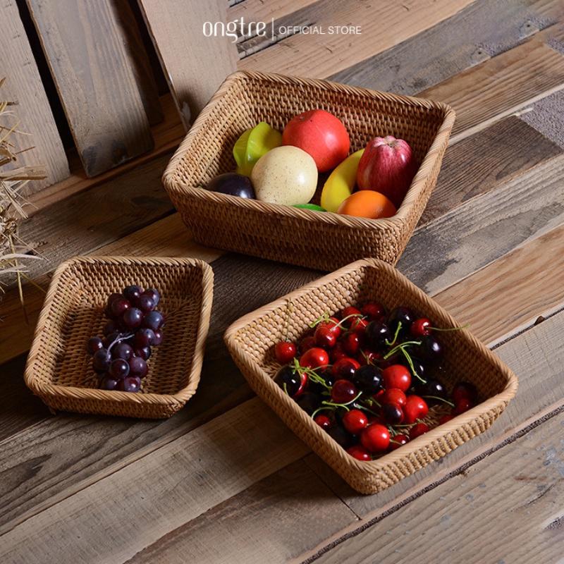 ✨Giỏ mây ONGTRE hình chữ nhật đáy vát đựng hoa quả, bánh kẹo