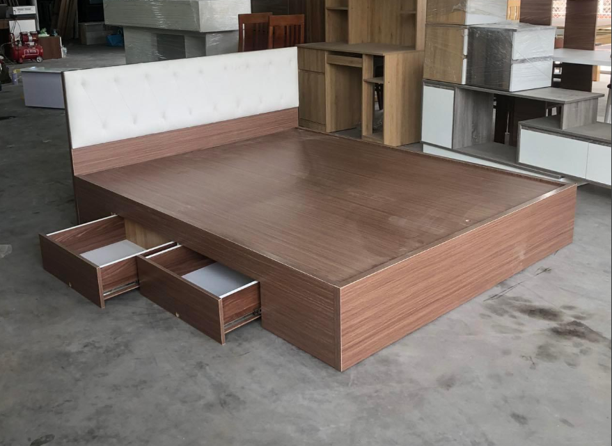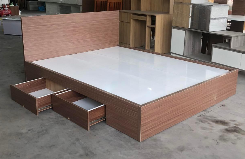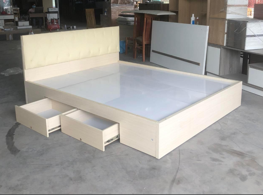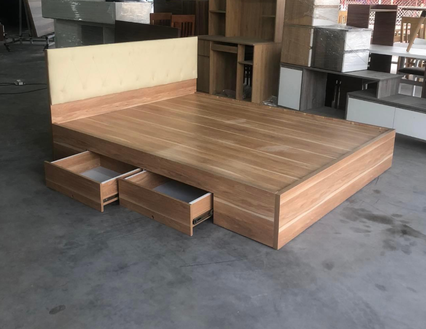 Giao Và Lắp Đặt Giường Gỗ Công Nghiệp Màu Vàng Vân Gỗ | Nội Thất Viva
