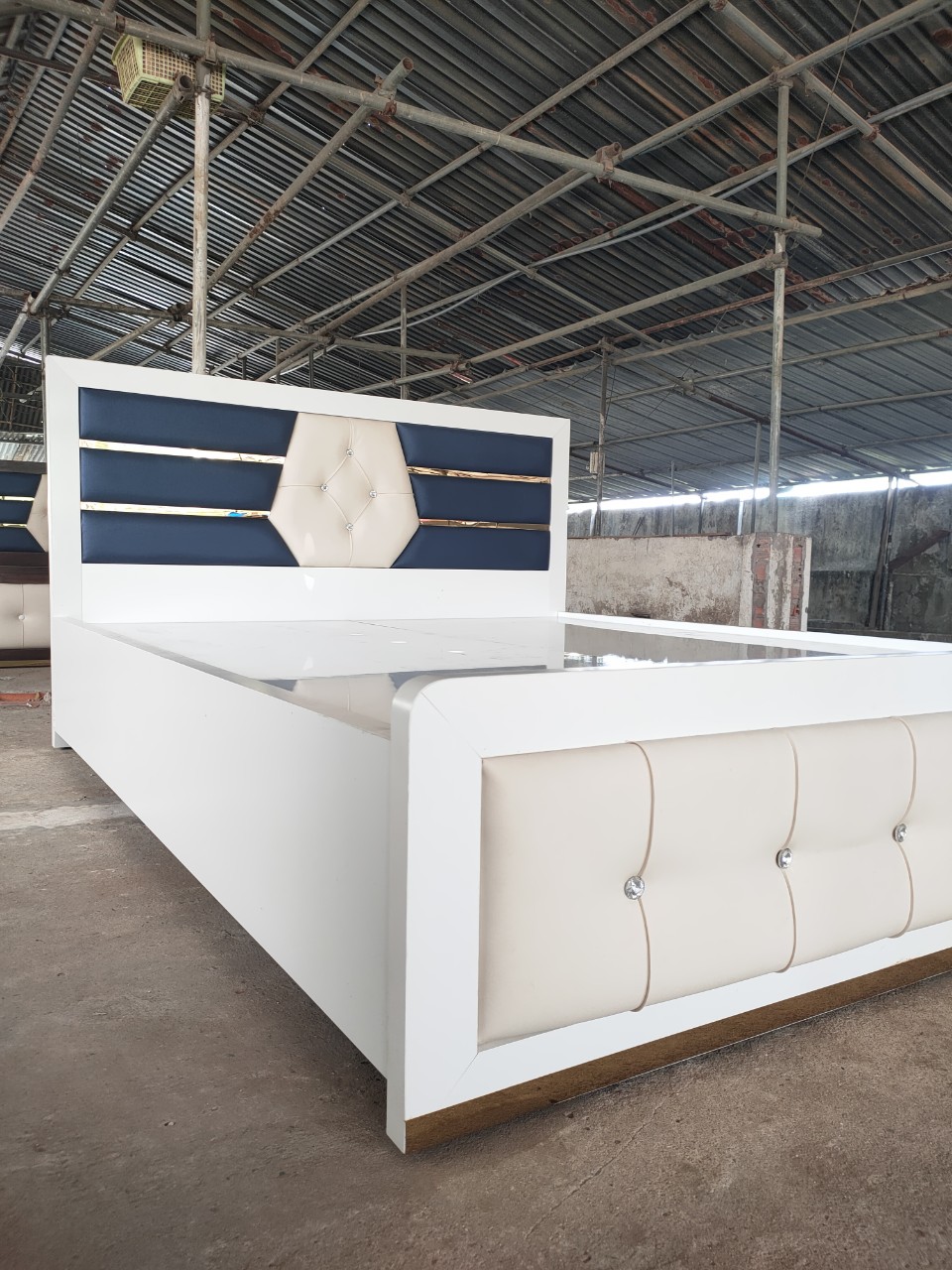 ✨Giường gỗ MDF lõi xanh Tundo kết hợp inox mạ vàng