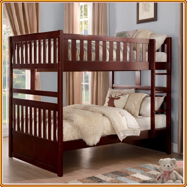 Giường tầng xuất khẩu Derby có kích thước lọt lòng giường trên/dưới là 100x193 cm / 120 x 193 cm, phủ bì 206x128x178 cm. Khoảng cách giữa 2 tầng là 98 cm, cầu thang có