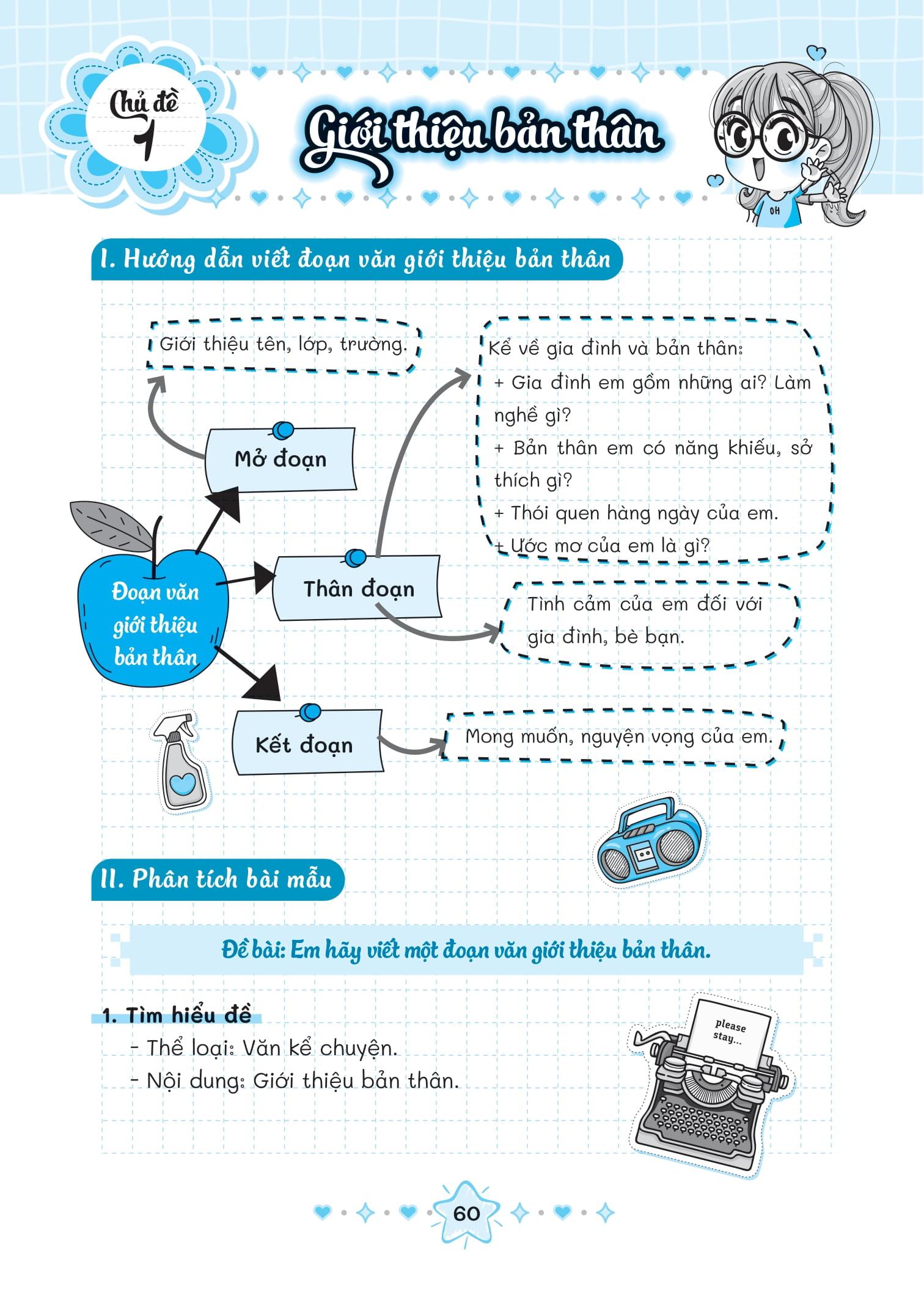 - Sơ đồ tư duy và dàn bài rõ ràng, dễ hiểu: Sách cung cấp sơ đồ tư duy và dàn bài chi tiết, giúp các bạn nhỏ hiểu rõ cấu trúc của một bài văn và cách triển khai ý tưởng một cách có hệ thống.