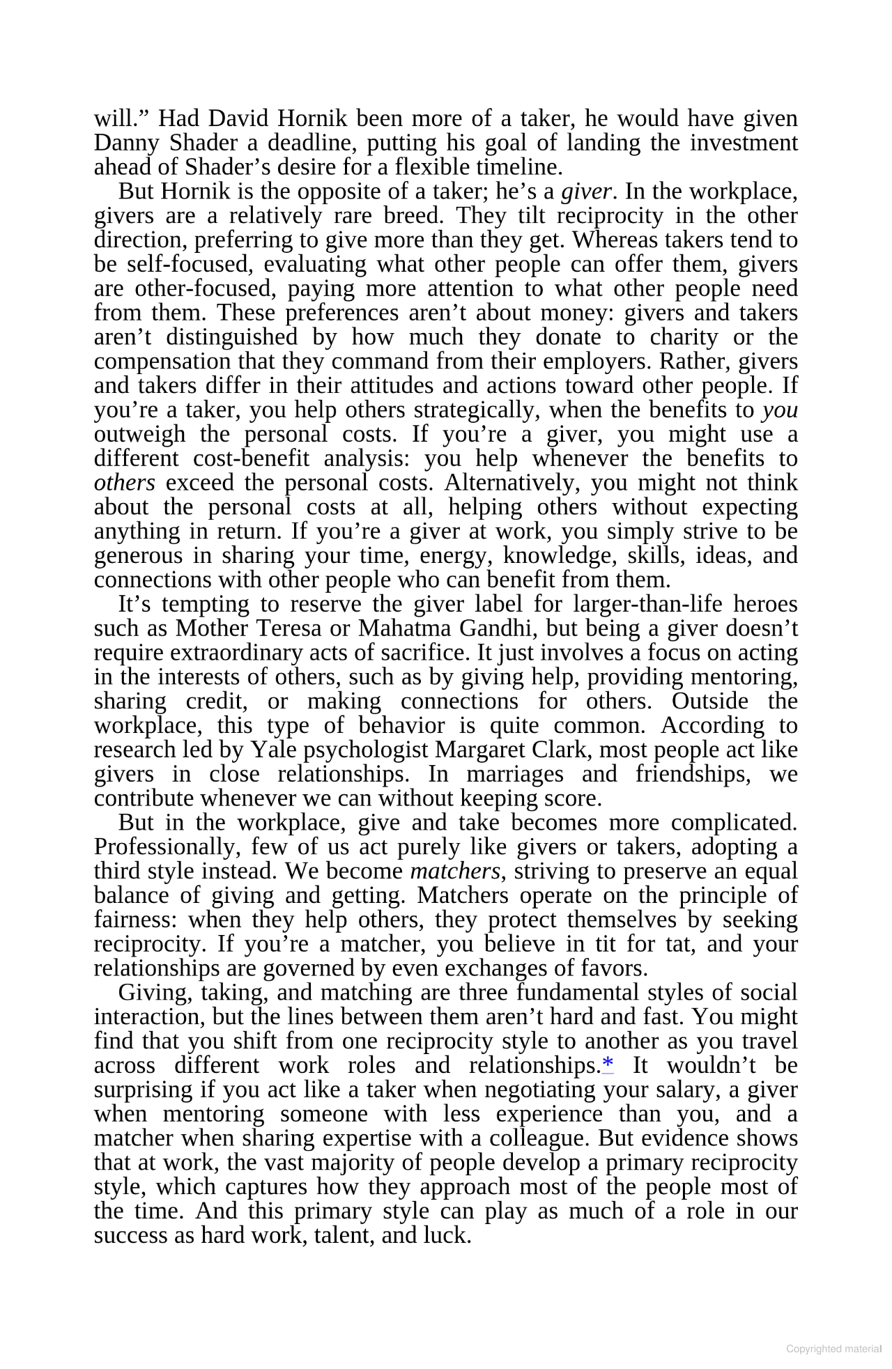 The motivations behind today's most successful leaders and entrepreneurs come to a simple yet decisive explanation: there are people who give, people who take, people who match, and people who fake. Our world is filled with these givers, takers, matchers and fakers. Amazingly, those who succeed (not only personally but for their clients and companies) don't take or match. They give. (Although they're not necessarily philanthropic.)