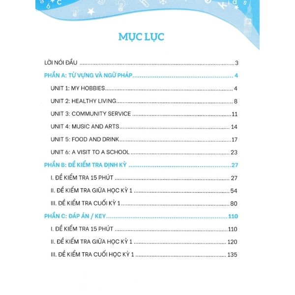 “Bộ đề kiểm tra định kỳ 4 kỹ năng nghe - nói - đọc - viết Tiếng Anh lớp 7” nhằm rèn luyện cho các em kĩ năng làm bài thi, làm chủ các dạng đề, hiểu được kết cấu và cách thức ra đề của từng kỳ thi. Khi các em đã quen với các dạng bài tập và trải nghiệm làm đề thường xuyên thì việc tự tin trước các kỳ thi là điều hiển nhiên có được.