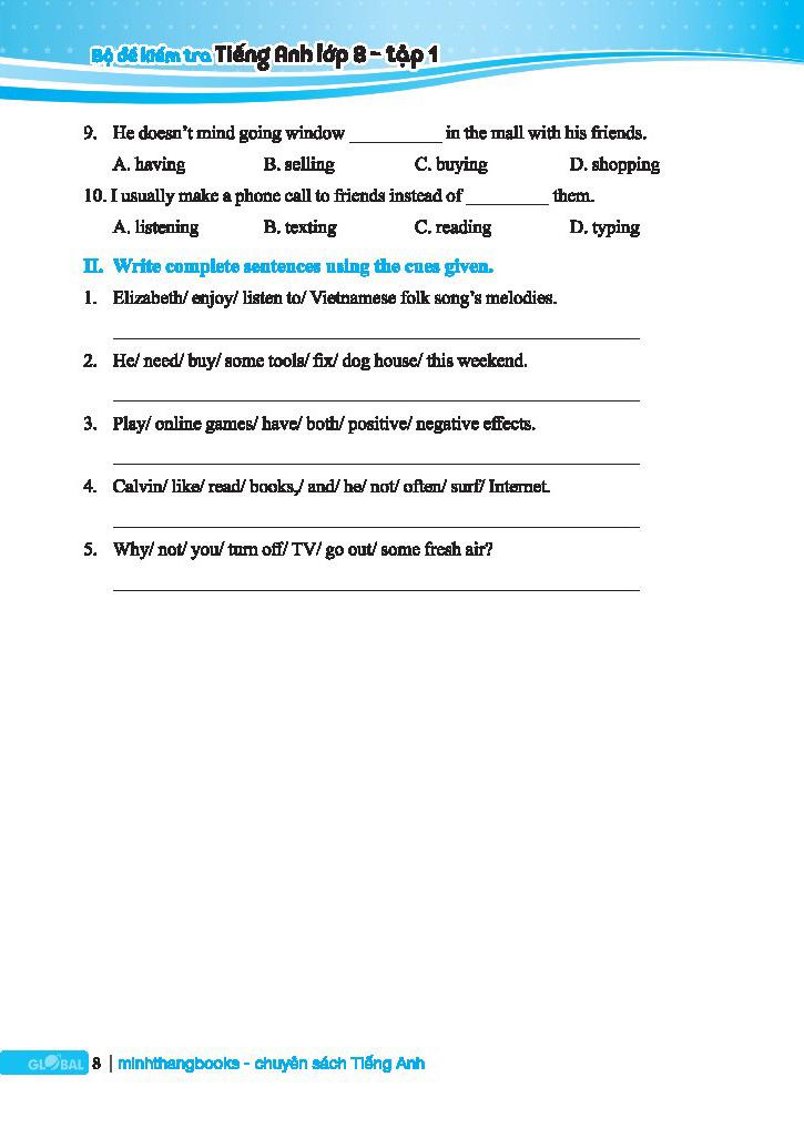 Global Success - Bộ Đề Kiểm Tra Tiếng Anh Lớp 8 - Tập 1 (Có Đáp Án)