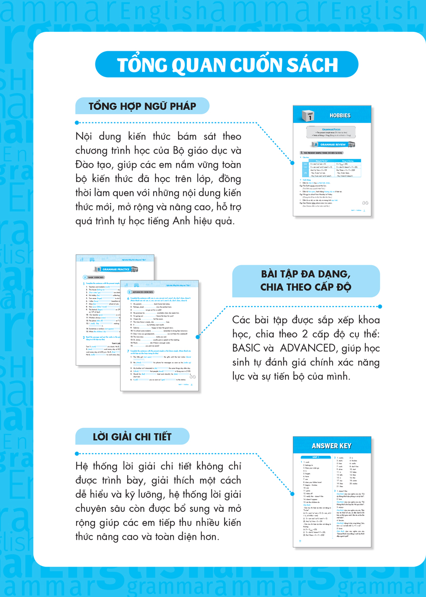Các chủ điểm ngữ pháp Tiếng Anh cơ bản , cô đọng , dễ hiểu , dễ nhớ -Bài tập thực hành đa dạng kèm hình ảnh minh họa sinh động -Làm chủ ngữ pháp