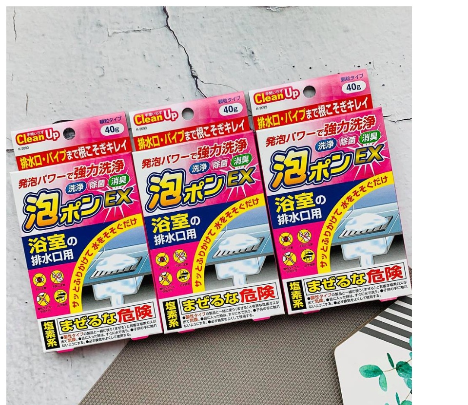 Gói bột tẩy rửa thông tắc đường ống vệ sinh đa năng - Nội địa Nhật : -Thành phần: Dichloroisocyanurate, Perborates, Natriaxit, chất hoạt động bề mặt, phụ gia... -Công dụng : -
