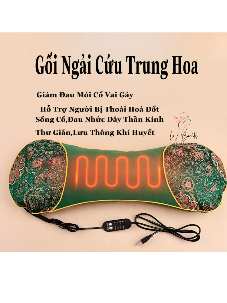 Gối ngải cứu thảo mộc, cắm điện làm nóng, giúp thư giãn vùng cổ vai gáy, dễ dàng đi vào giấc ngủ