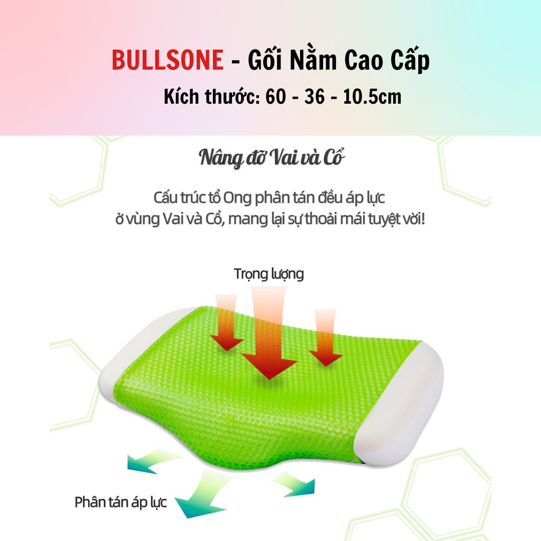 ✨Gối đầu cao cấp Bullsone Hàn Quốc HQGD04 chất liệu Aircell Vetagel - Hàng Chính Hãng