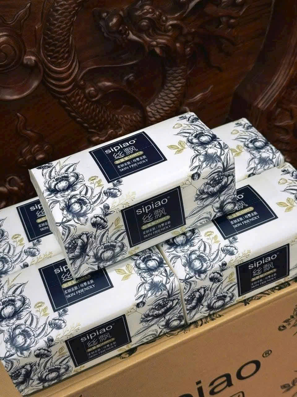 Bộ sản phẩm bao gồm: 1 Gói Giấy Ăn Sipao Hoa Xanh Đen