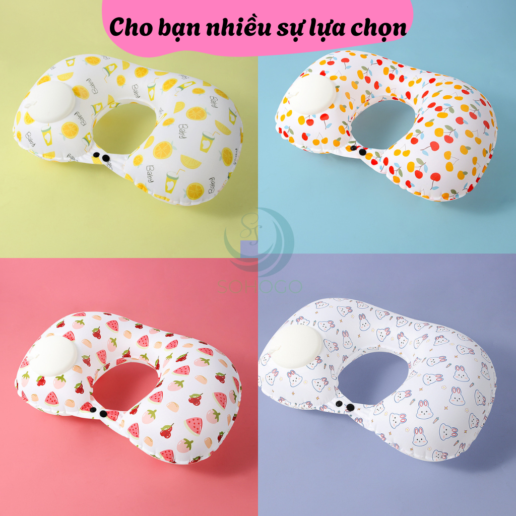 Gối hơi chữ U Minosuke - ấn bơm hơi ngay trên gối dùng đi du lịch , ô tô, máy bay