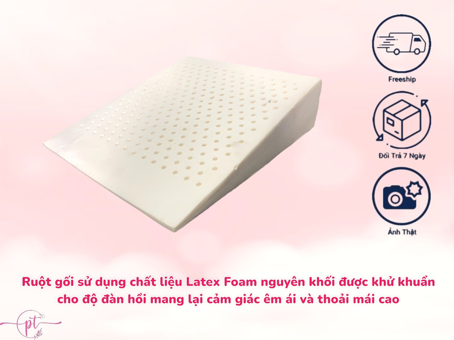 Với nguyên liệu 100% cao su thiên nhiên giúp cho gối giữ được độ dẻo và đàn hồi tự nhiên, êm ái, không xẹp lún nâng đỡ trọn vẹn vùng cổ, không bị trượt, lệch