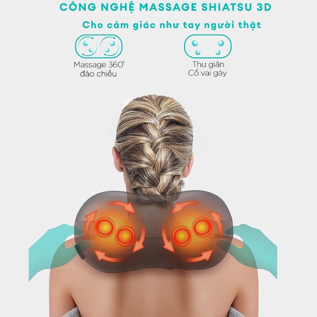 Gối massage kèm nhiệt công nghệ Shiatsu 3D HoMedics SP-100H-GB Gối massage HoMedics SP-100H-GB sử dụng công nghệ massage 3D Shiatsu xoa bóp hình tròn và rung động kèm nhiệt giúp nới lỏng và thư giãn các
