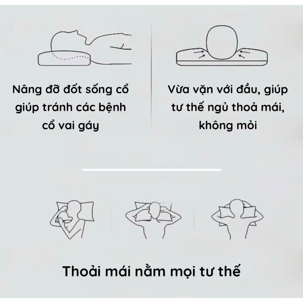 - Giúp Ngủ Ngon: Với thiết kế công thái học, gối giúp bạn duy trì tư thế ngủ đúng, từ đó cải thiện chất lượng giấc ngủ, mang lại cảm giác thư giãn tuyệt vời mỗi sáng thức dậy.