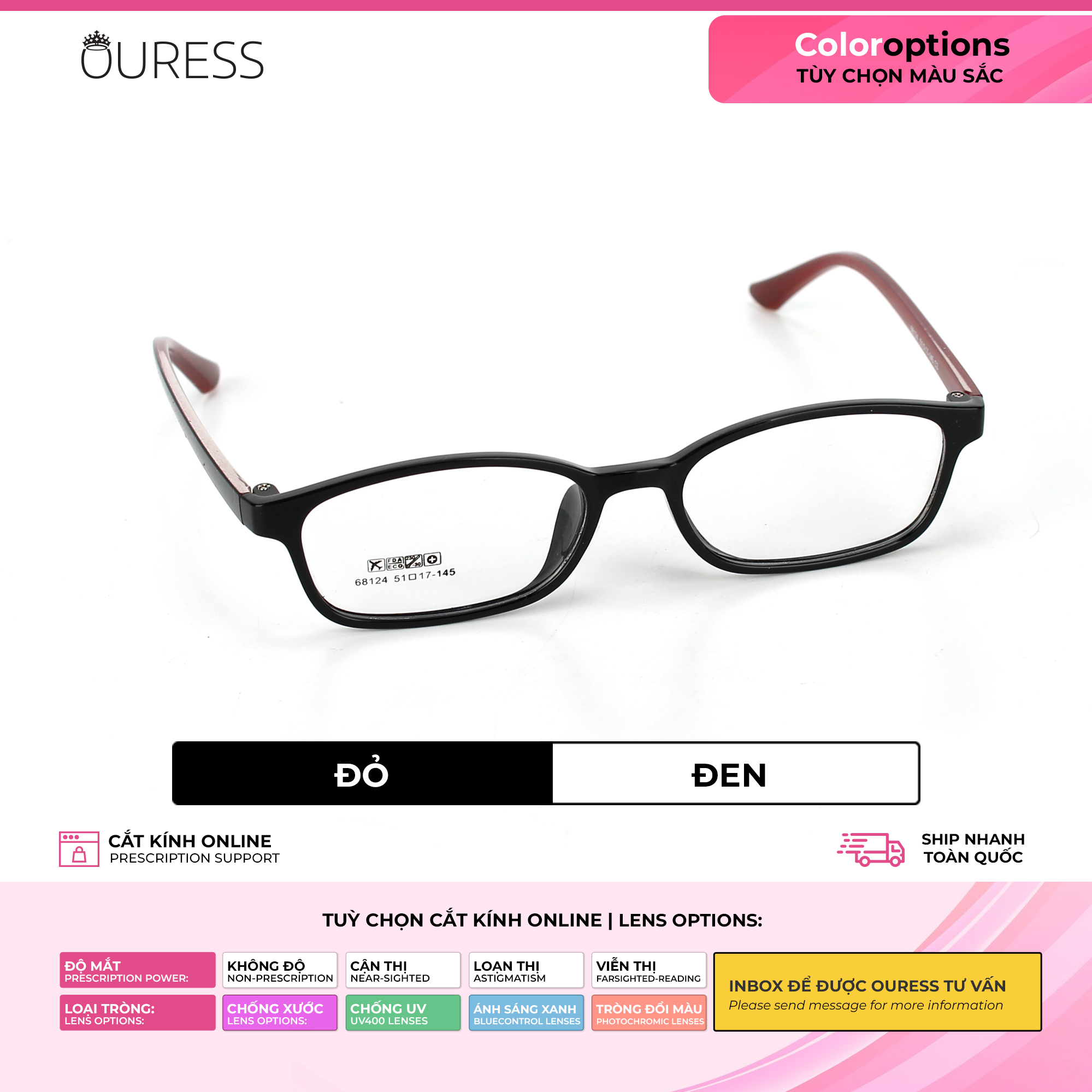 ✨Gọng kính nhựa 68124 thời trang nam nữ siêu nhẹ siêu bền OURESS