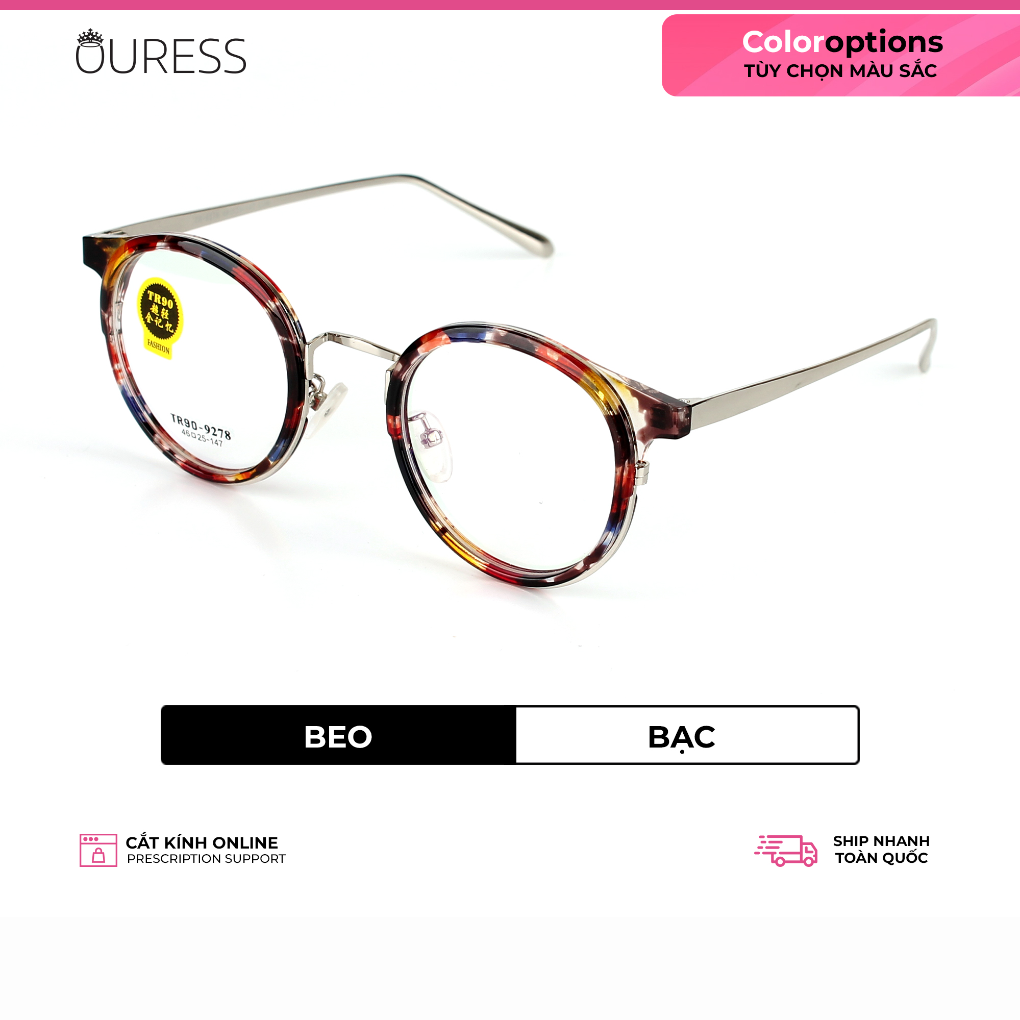 - Ouress nhận cắt tất cả các loại khúc xạ (cận, viễn, loạn, lão và kể cả độ cận cao) —-------------------------------------- GỌNG KÍNH CẬN NHỰA PHỐI HỢP KIM NAM NỮ THỜI TRANG - OURESS Trên thực tế, một số chất liệu nhựa có đặc tính giòn cứng, dễ gãy, tạo cảm giác “mong manh dễ vỡ”. Để khắc phục nhược điểm này, các mẫu kính gọng nhựa hợp kim ra đời. Nhờ có lõi kim loại bên trong, lớp nhựa dẻo dai bọc ngoài nên các sản phẩm này cho cảm giác cứng cáp, form kính chắc chắn và đẹp hơn. Lớp nhựa phủ bên ngoài có thể biến tấu vô vàn màu sắc khác nhau cùng những họa tiết độc đáo để tạo ra những phong cách thời trang ấn tượng. Ngoài những ưu điểm trên, gọng kính nhựa phối hợp kim còn có thêm các ưu điểm: