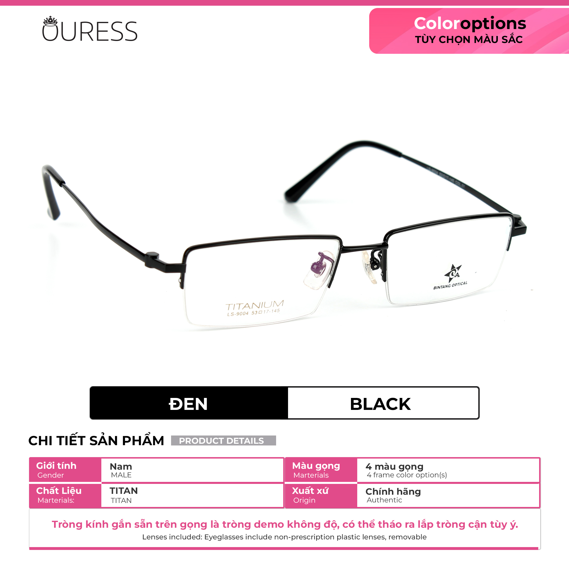 Lưu ý: Quý khách vui lòng cung cấp đầy đủ thông tin như trên cho Ouress trong vòng 02 ngày kể từ ngày đặt hàng. Hết thời hạn mà không nhận được thông tin, Ouress xin phép được gửi mặc định tròng 0 độ để đảm bảo quy định giao hàng của sàn.