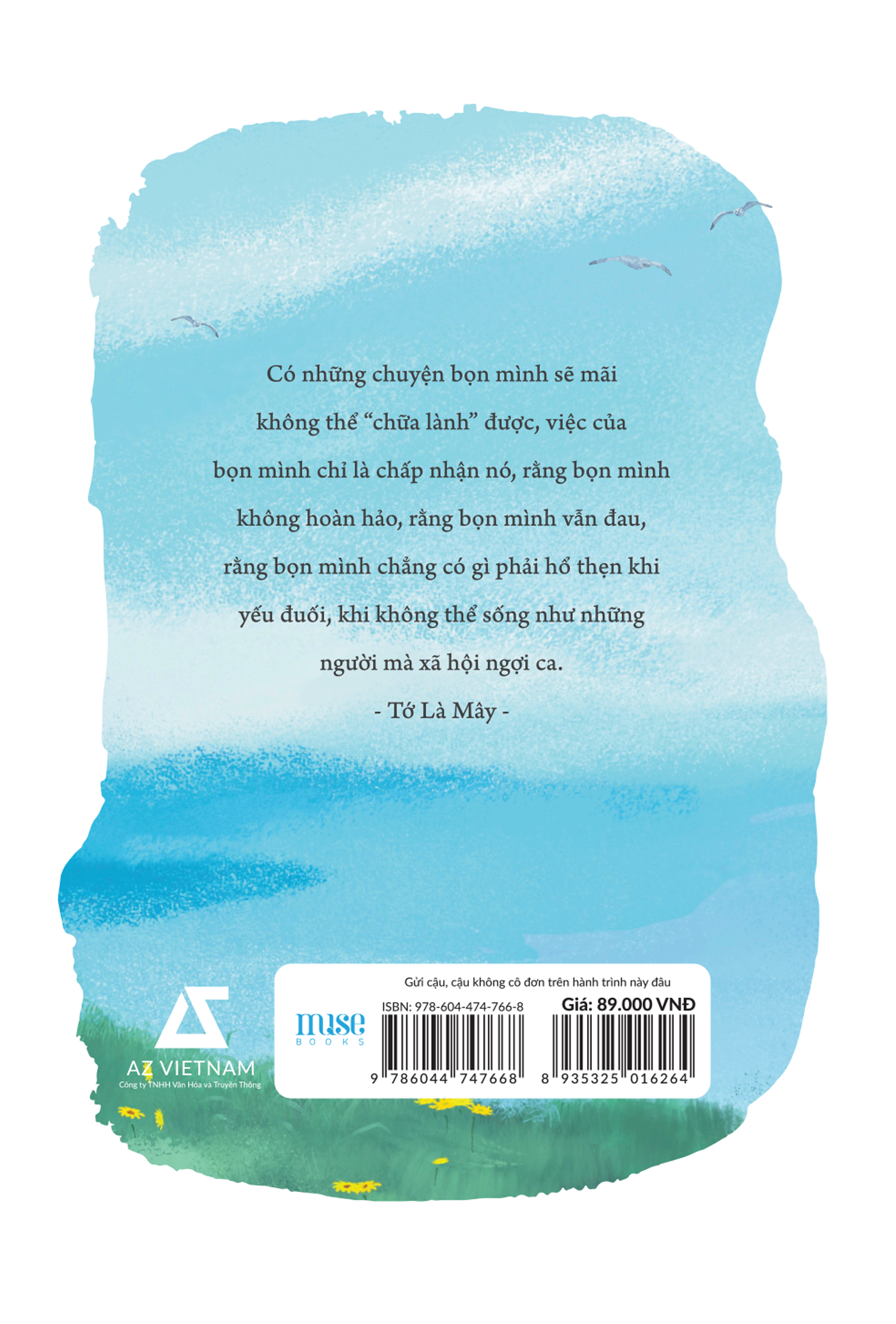 Và có lẽ đó cũng chính là lý do mà Tớ Là Mây đã chắp bút đề tên cho cuốn sách đong đầy những yêu thương và sắc màu xúc cảm này là “Gửi Cậu, Cậu Không Cô Đơn Trên Hành Trình Này Đâu” – cùng với những chia sẻ về những trải nghiệm đắt giá mà bất cứ ai cũng đều phải trải qua trên bước đường trưởng thành, để nhắn nhủ đến từng người rằng: Cho dù bạn đang ở chặng nào của cuộc hành trình thì cũng sẽ luôn có nắng vàng rạng rỡ, những bông hoa ngọt ngào, thảm cỏ cây xanh mướt và một áng “Mây” xinh luôn đồng hành bên bạn, để bạn không cô đơn, để bạn không hoang mang mơ hồ trên bước đường trưởng thành đầy gai góc này.