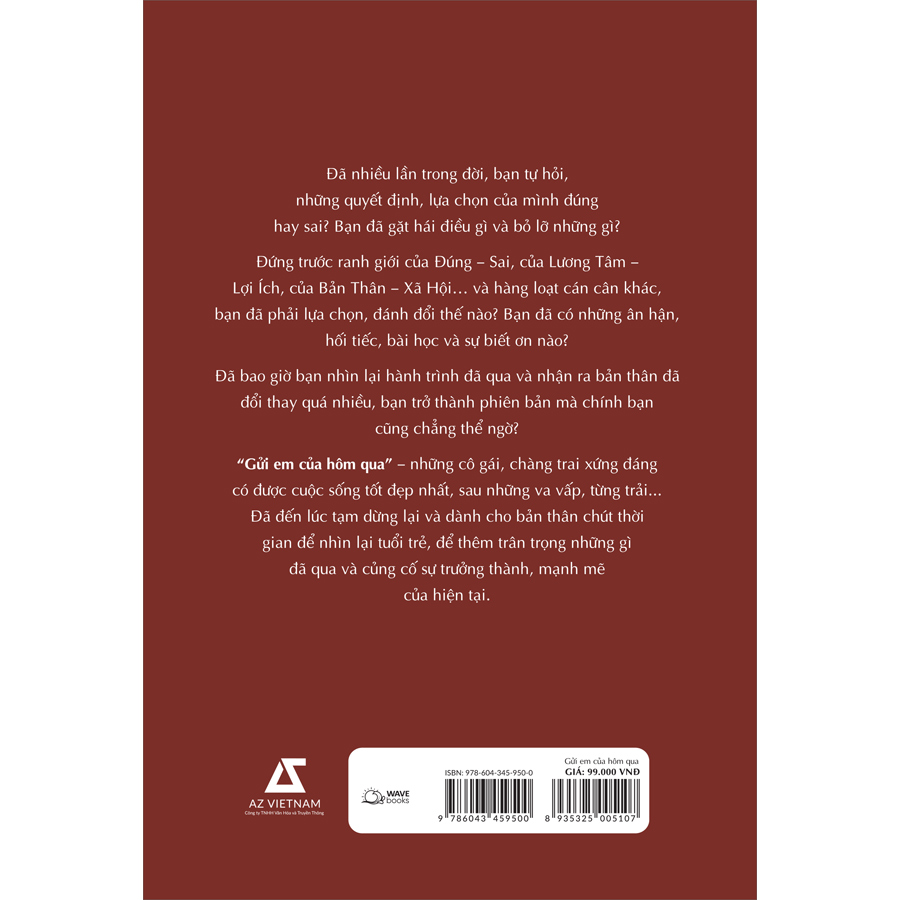 “Gửi em của hôm qua” là những giây phút, những thước phim quay chậm về một thời tuổi trẻ mà Gari “tua” lại bằng con chữ. Cuốn sách mời gọi bạn cùng nhìn lại một chặng đường, mà trên đó bạn phải trải qua nhiều thử thách, va vấp lẫn thay đổi trong vòng xoay của mưu sinh, tình yêu, đam mê, và sự nghiệp. Dẫu có thế nào, cũng mong bạn có thể bao dung, trân trọng những điều của hôm qua. Hãy cho phép bản thân được bước qua sai lầm tuổi trẻ và dang tay chào đón hiện tại. Hãy sống thật rạng rỡ và trọn vẹn, để xứng đáng với Món Quà Cuộc Đời mà Ông Trời ban tặng.