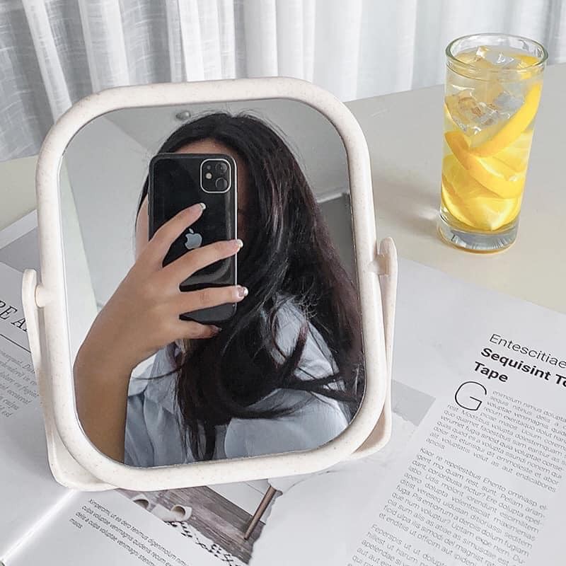 - Gương để bàn trang điểm lúa mạch có thể xoay 360 độ, gương trang điểm, kiểu dáng thời trang, trang điểm đẹp hơn, nhanh hơn và đơn giản hơn. chị em không phải đứng hàng giờ liền trước gương treo tường, chỉ cần ngồi đúng tư thế và chỉnh mặt gương cho phù hợp với hướng soi của bạn.