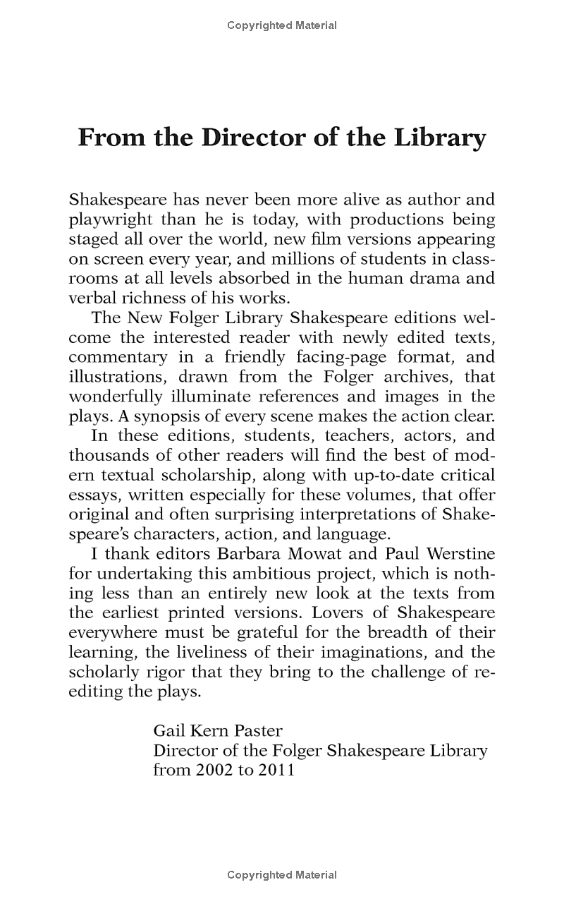 The Library offers the definitive, updated edition of "Hamlet," with newly edited text, explanatory notes, scene summaries, and more. "Hamlet" is Shakespeare's most popular, and most puzzling, play. It follows the form of a "revenge tragedy," in which the hero, Hamlet, seeks vengeance against his father's murderer, his uncle Claudius, now the king of Denmark. Much of its fascination, however, lies in its uncertainties. Among them: What is the Ghost--Hamlet's father demanding justice, a tempting demon, an angelic messenger? Does Hamlet go mad, or merely pretend to? Once he is sure that Claudius is a murderer, why does he not act? Was his mother, Gertrude, unfaithful to her husband or complicit in his murder? The authoritative edition of "Hamlet "from The Shakespeare Library, the trusted and widely used Shakespeare series for students and general readers, is now available as an eBook. Features include: - The exact text of the printed book for easy cross-reference - Hundreds of hypertext links for instant navigation - Freshly edited text based on the best early printed version of the play - Full explanatory notes conveniently placed on pages facing the text of the play - Scene-by-scene plot summaries - A key to famous lines and phrases - An introduction to reading Shakespeare's language - Illustrations from the Shakespeare Library's vast holdings of rare books - An essay by a leading Shakespeare scholar providing a modern perspective on the play