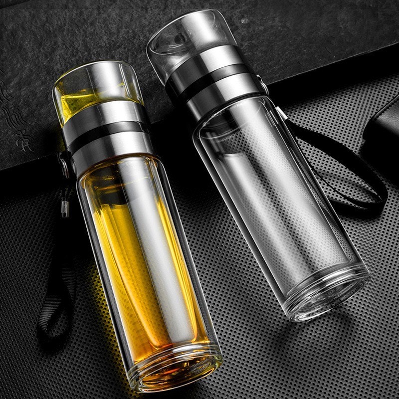 Bình Pha Trà Thủy Tinh Câm Tay 2 Lớp Cách Nhiệt, Thiết Kế Phong Cách Năng Động, Trẻ Trung - 400ml
