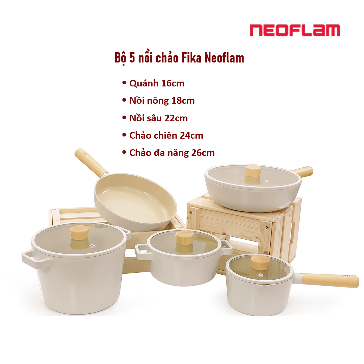 ✨[Hàng chính hãng] Bộ 5 món nồi chảo chống dính Fika Neoflam - Hàn Quốc (03 phương án lựa chọn), Made in Korea. Hàng có sẵn, giao ngay